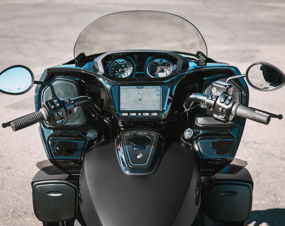 Ride Command® 7-Zoll-Display mit vorinstallierter GPS-Navigation, Apple CarPlay®, Bluetooth®-Konnektivität, konfigurierbaren Anzeigen, Fahrstatistiken und weiteren Funktionen.